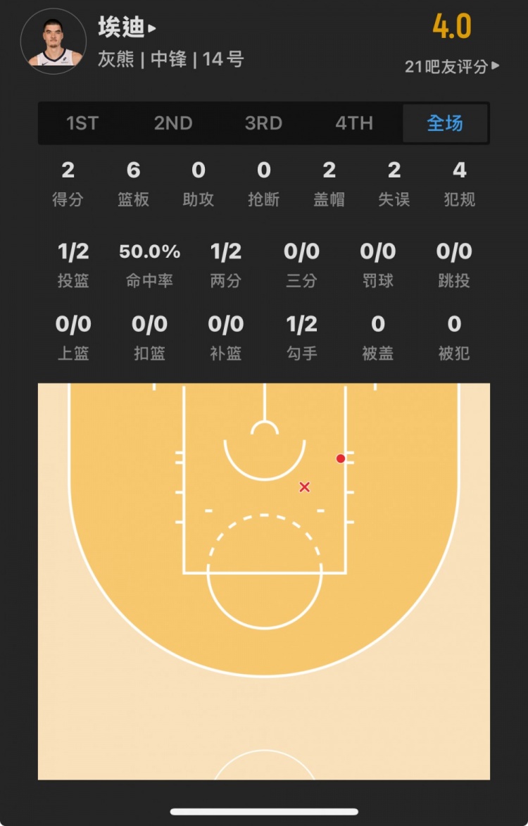 灰熊9号秀 扎克-埃迪 登场12.2分钟