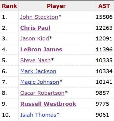 如今,斯托克顿的助攻总数仍然领先第二名的保罗3500多次。