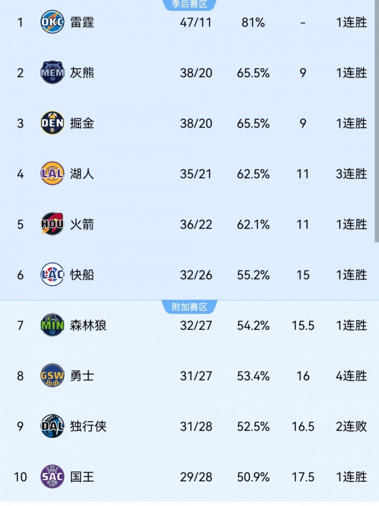 此役过后,快船战绩来到32胜26负,继续排名西部第6。