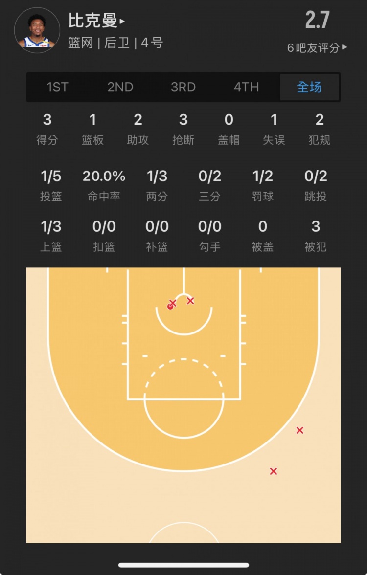 篮网落选秀 里斯-比克曼 登场26.9分钟