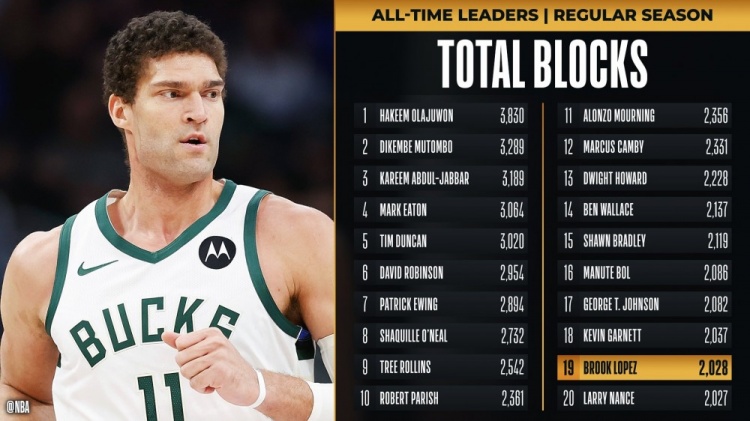 这样一来,大洛佩斯生涯盖帽数达到2028个,超越拉里-南斯(2027个)独占历史第19位,下一步将追逐加内特(2037)。