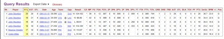斯托克顿:20分28助攻8抢断、19分21助攻8抢断、19分20助攻8抢断、18分18助攻8抢断