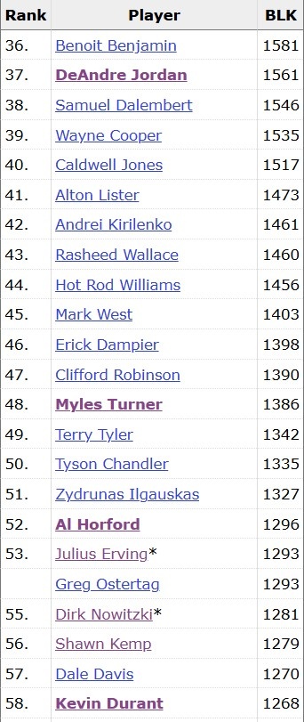 杜兰特生涯盖帽总数超越戴尔-戴维斯 上升至NBA历史第57位