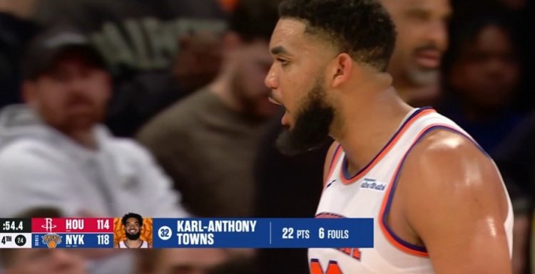 狄龙突破造成唐斯犯规 唐斯6犯离场&其中第四节4次犯规