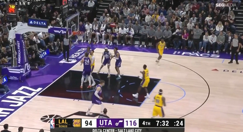 比赛最后7分半 湖人落后22分 雷迪克换上布朗尼!