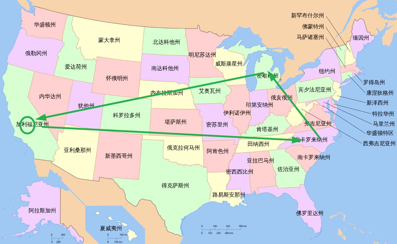 ✈️克内克特一周飞行路线:LA→夏洛特→底特律→LA