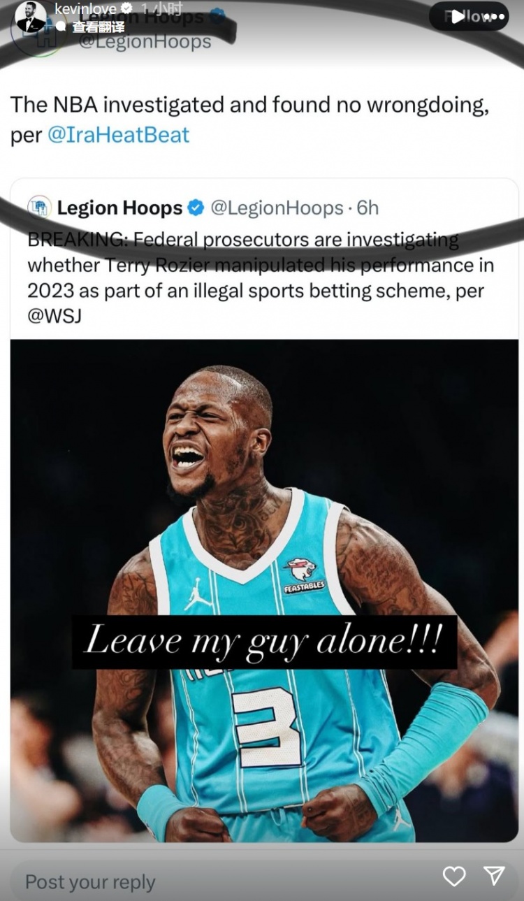 罗齐尔涉嫌参与非法博彩被调查!乐福驳斥美媒:离我兄弟远一点 1月31日讯 此前,美媒报道罗齐尔涉嫌参与非法博彩被调查。对此,热火老将乐福转发力挺罗齐尔,他写道:“离我兄弟远一点。” 2025/01/31