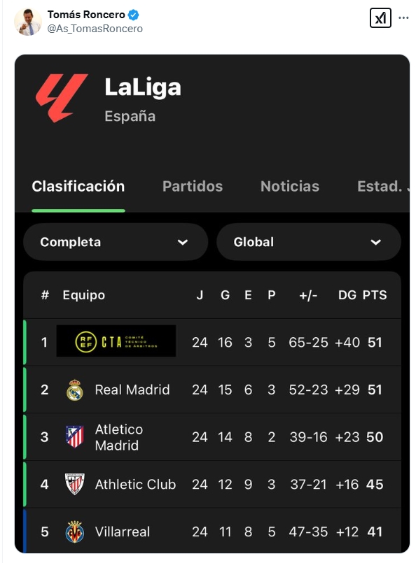 巴萨再登顶!龙赛罗晒积分榜:将巴萨队徽换成裁判技术委员会标志