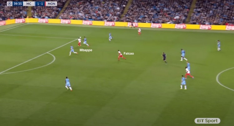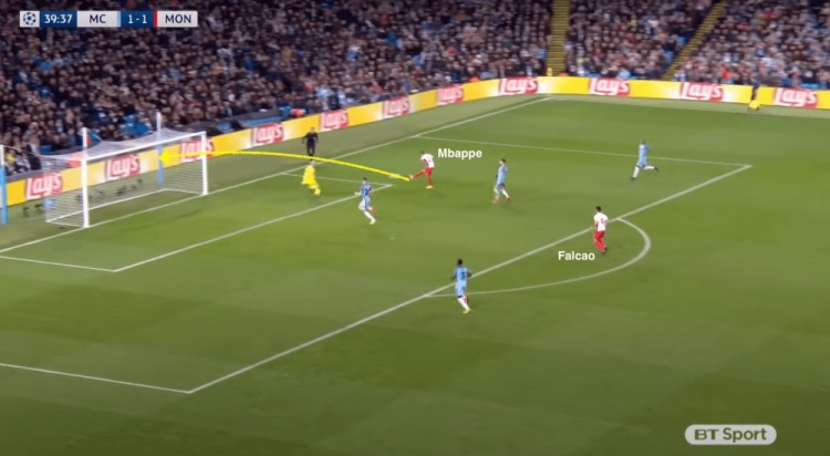 法尔考纵深跑位,为姆巴佩创造出了进攻空间,并最终破门得分。