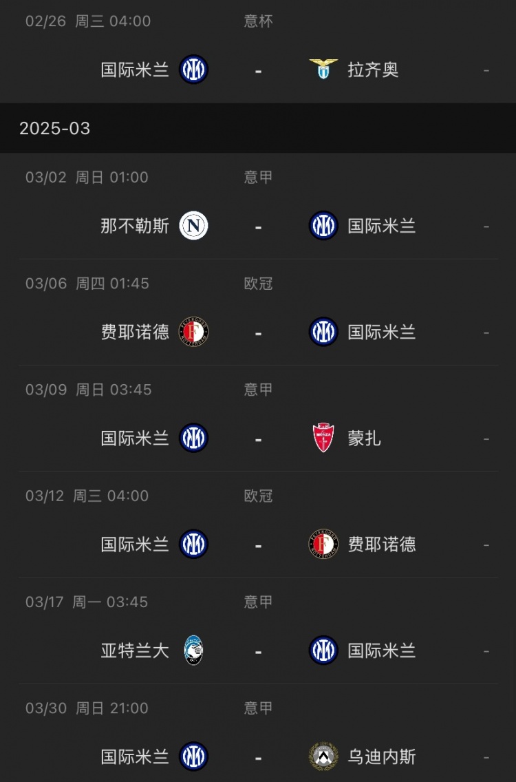 国米未来赛程↓