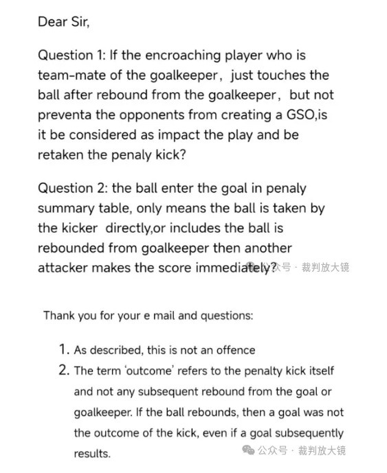针对上述情况,也有老师咨询了IFAB,给出的答案,大家可以参考。