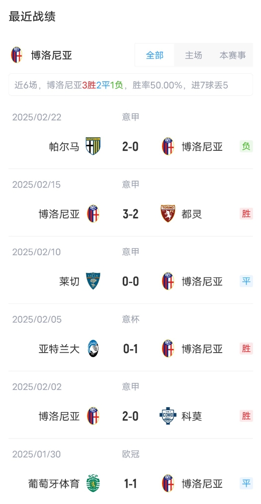 博洛尼亚首发:1-斯科鲁普斯基、29-德-西尔维斯特里、31-别克马、15-卡萨勒、33-胡安-米兰达、8-弗鲁勒、19-刘易斯-弗格森、11-恩多耶、80-法比安、30-本杰明-多明戈斯、9-卡斯特罗