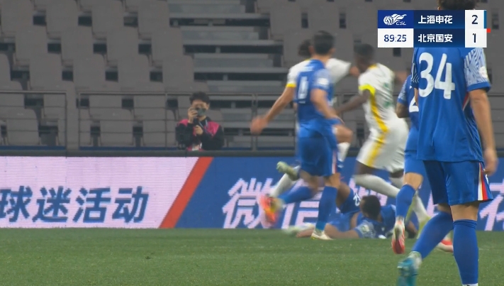 【判例一】:中超联赛第2轮,上海申花VS北京国安,比赛第89分钟,北京国安9号队员在对方罚球区内与上海申花32号队员争抢球后倒地,裁判员未判罚犯规,VAR未介入。