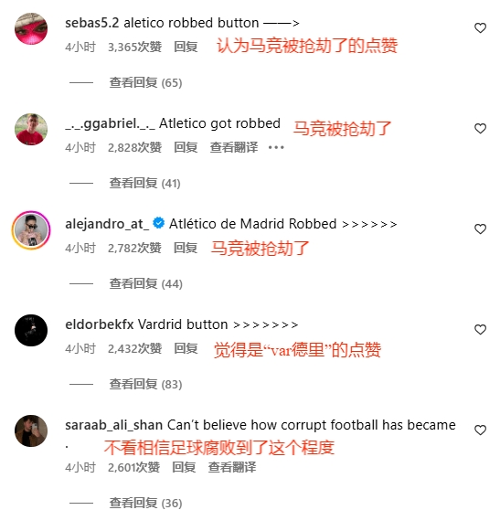 欧冠官方ins评论区被刷屏:马竞被抢劫了 足球竟腐败到这个地步