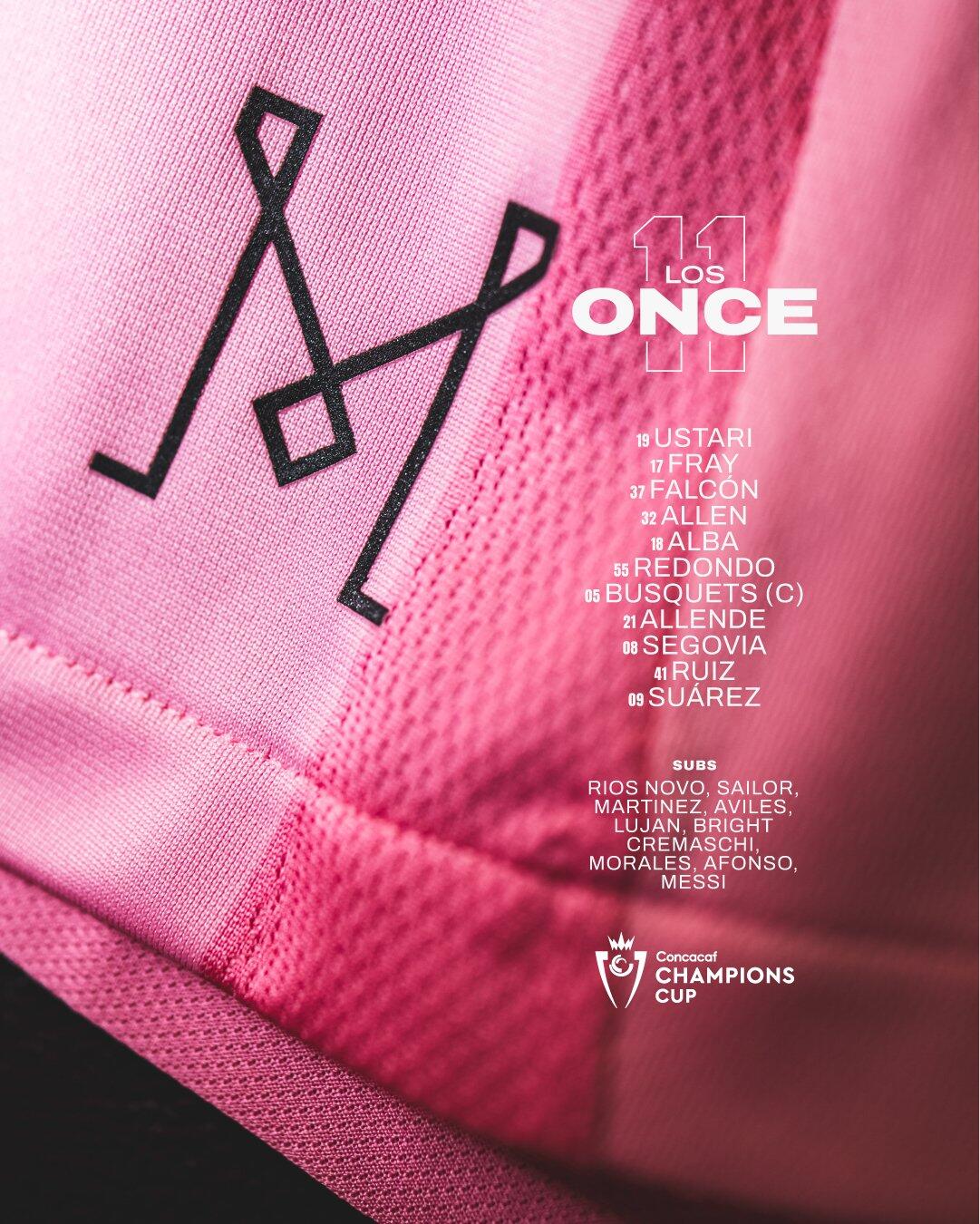 迈阿密国际首发:19-乌斯塔里、17-伊恩-弗雷、37-法尔肯、32-阿伦、18-阿尔巴、5-布斯克茨、55-雷东多、21-阿连德、8-特拉斯科、41-鲁伊斯、9-苏亚雷斯
