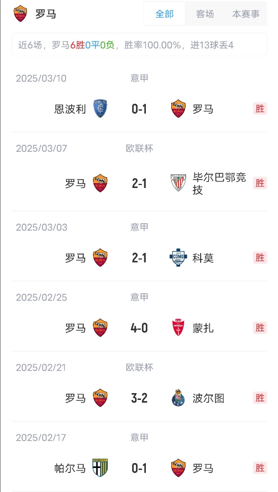 罗马首发:99-斯维拉尔、5-恩迪卡、15-胡梅尔斯、23-曼奇尼、3-安吉利诺、16-帕雷德斯、4-克里斯坦特、2-伦施、35-巴尔丹齐、21-迪巴拉、11-多夫比克