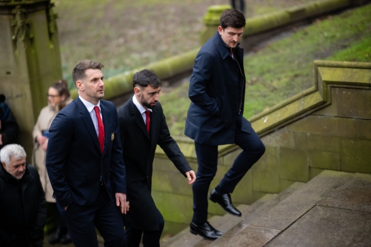 曼联官方表示,俱乐部CEO贝拉达、主教练阿莫林、队长B费以及一线队球员马奎尔、希顿都前往了曼彻斯特大教堂,参加丹尼斯-劳的葬礼。