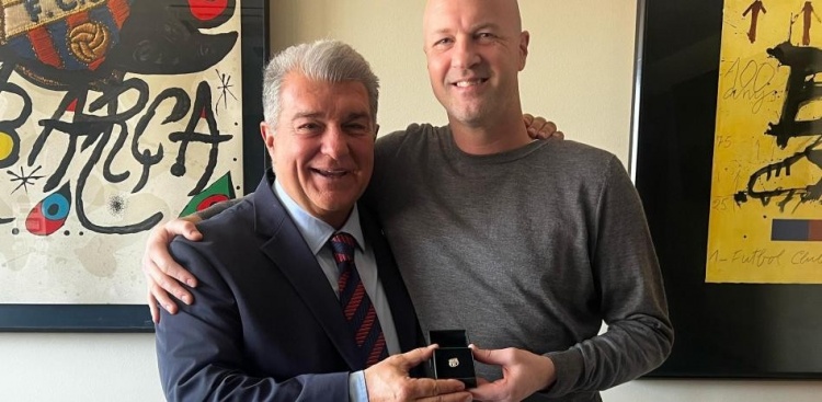 拉波尔塔授予小克鲁伊夫一枚银牌勋章,以表彰他成为巴萨会员25年 1月31日讯 《世界体育报》消息,巴萨主席拉波尔塔在他的办公室里向小克鲁伊夫授予了一枚银牌勋章,以表彰后者成为巴萨俱乐部会员25周年。小克鲁伊夫今年50岁,球员时期效力过巴萨,在2021年-2023年 2025/01/31